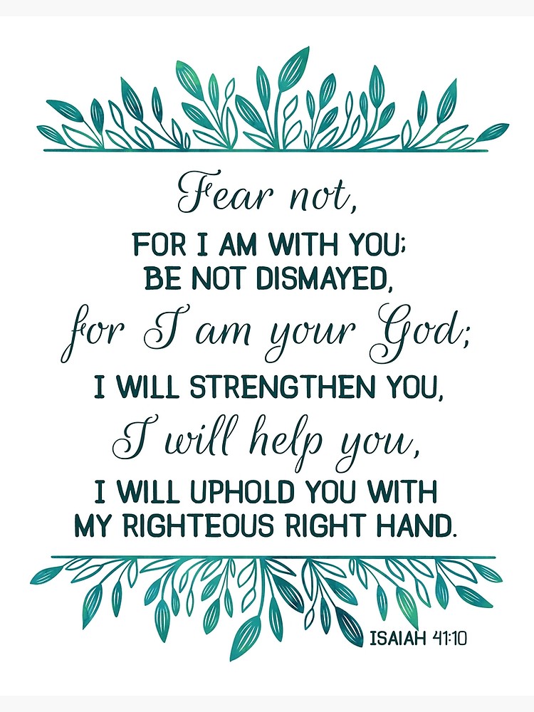 Fear not, for I am with you; be not dismayed, for I am your God. I will strengthen you, Yes I will help you, I will uphold you with My righteous right hand.