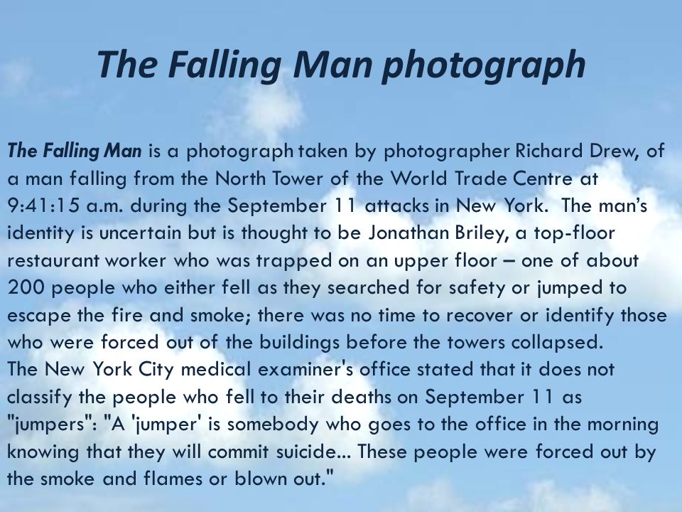 The Falling Man by ChildofGod September 11, 2019 Share this: Share on X (Opens in new window) X Share on Facebook (Opens in new window) Facebook Like Loading... Related