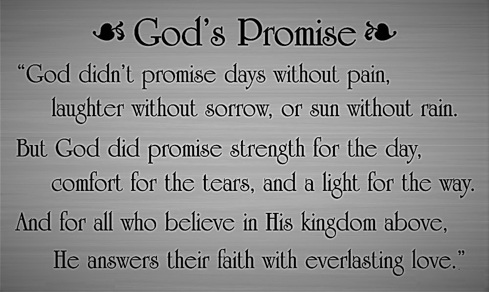 God didn’t promise days without pain… by ChildofGod October 16, 2019 Share this: Share on X (Opens in new window) X Share on Facebook (Opens in new window) Facebook Like Loading... Related
